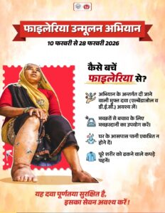 बहराइच 12 फरवरी। राष्ट्रीय फाइलेरिया उन्मूलन अभियान के तहत जरवल ब्लॉक में सामूहिक दवा सेवन अभियान चलाया जा रहा है। मुख्य चिकित्सा अधिकारी के निर्देशन में आशा, आंगनबाड़ी व स्वास्थ्य कर्मी घर-घर पहुंचकर लोगों को फाइलेरिया से बचाव की दवा खिला रहे हैं, ताकि संक्रमण की श्रृंखला टूटे और नए मामलों को रोका जा सके। अभियान के लिए 510 स्वास्थ्य टीमें गठित की गई हैं, जो अपने सामने 2.88 लाख से अधिक लोगों को दवा खिलाना सुनिश्चित करेंगी। इसके लिए 43 सुपरवाइजर भी लगाए गए हैं।